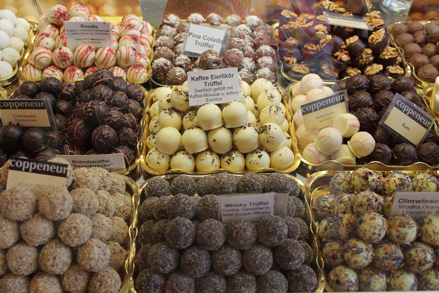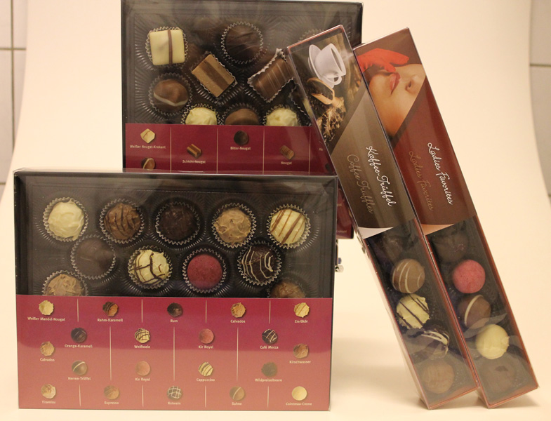 Pralinen und Trüffel in diversen Geschenkpackungen